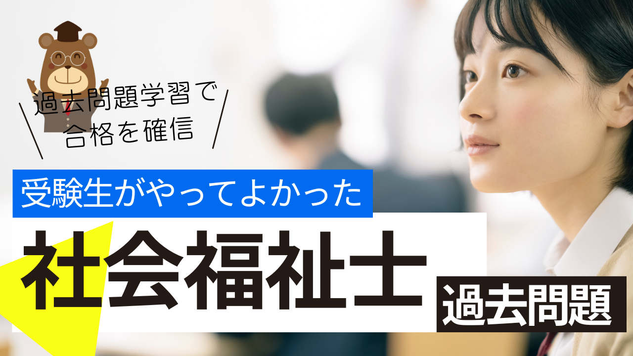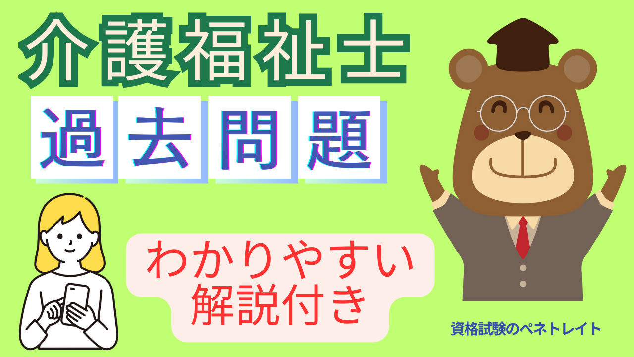 社会福祉士過去問題3 介護福祉士の過去問題から動画を作成しています。実際の問題に触れることで、合格するための学習がわかり、効率の良い学習ができるようになります。1問1問大切に解いていきましょう