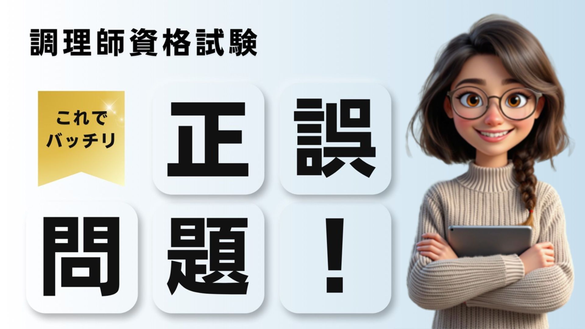 調理師2章2の〇×問題です。1問1問にわかりやすい解説がついています。4分ほどの動画です。繰り返し視聴していただき、3回目にしっかり答えましょう。間違いなく全問正解できます。