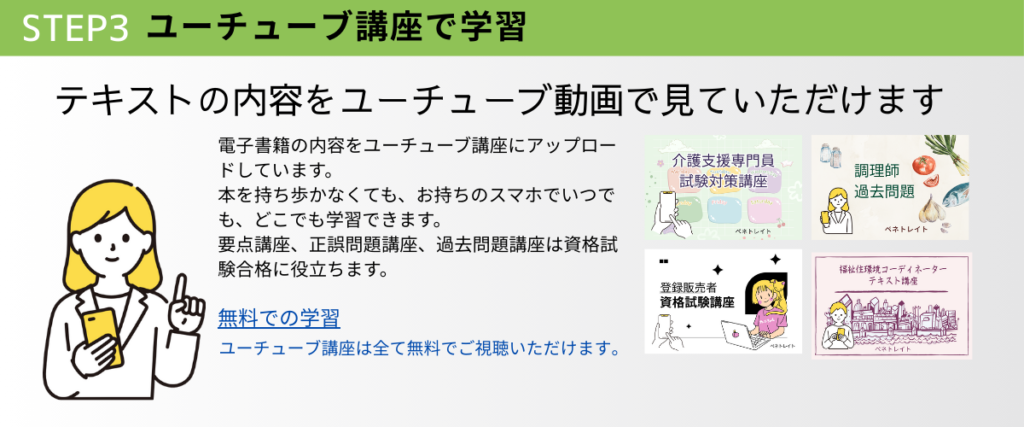 資格試験のペネトレイトの学習教材は無料でご利用いただけます! 最近の投稿 福祉住環境コーディネーター1-12の〇×問題 登録販売者2章13-3の〇×問題 社会福祉士過去問題4 介護福祉士9章4-1 の〇×問題 介護支援専門員〇×問題1-1 保育士〇×問題1-5 「無料のe-ラーニング教材」と「ユーチューブ教材」で学習を開始しましょう! ユーチューブ動画とe-ラーニング教材の利用について