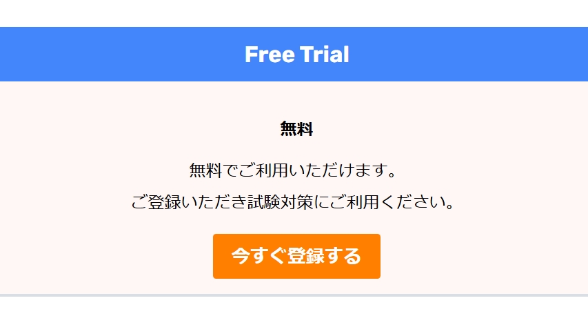 ご本人の学習の進捗状況を確認するために、「Free trial」のコーナーにある「今すぐ登録する」をクリックして、お名前など必要事項を記載してください。