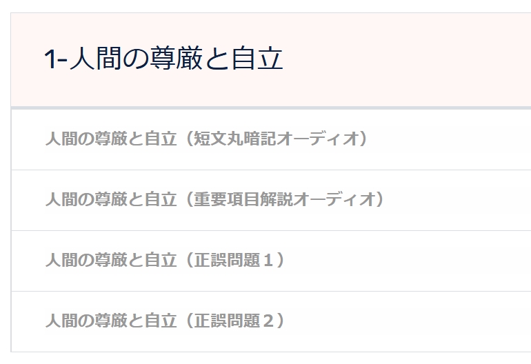 学習は項目別に進めていきます。