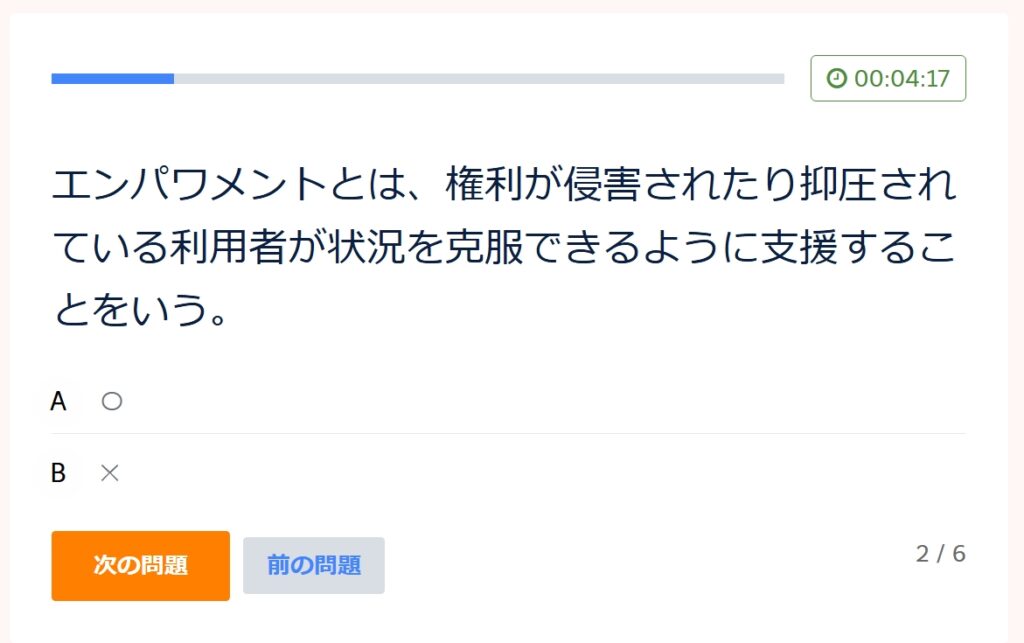 正誤問題ですので「A 〇 B ✕」の回答欄があります、正解だと思う方をクリックしてください。
